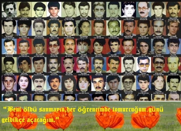 Kimi görev yerinde, kimi eşinin gözleri önünde, kimi çocuklarının önünde, kimi yolda, kimi araç içerisinde kimi evinden alınarak, kimi güvendiği kişilere kapıyı açtıkları için, kimi Ağrı’da, kimi Adana’da, Kimi İstanbul’da. Tam 150 eğitim şehidi. Bu vatan için toprağa düştüler. Evlatlarımızın geleceği uyruna, aydınlık Türkiye’nin ümidi çocukları yarınlara hazırlama uğruna; dağ demeden taş demeden, kar kış demeden, gittikleri görev yerlerinde, zengin demeden, fakir demeden, yaramaz demeden, uslu demeden velhasılı görevlerinin önünde hiçbir engel tanımadan kutasal görevlerini ifa ederken, hiç de umadıkları şekilde haince katledildiler.